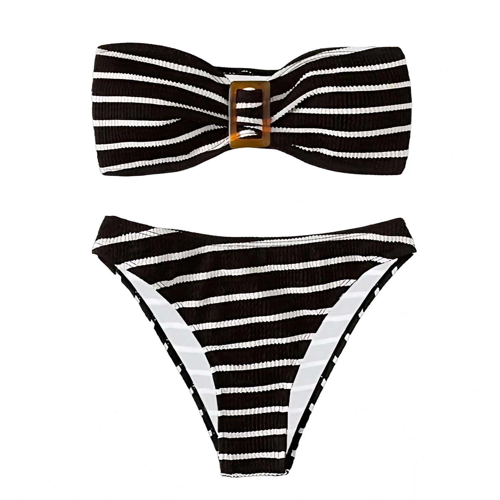 Black & White Striped Bandeau 2 Piece Bikini Set Details: