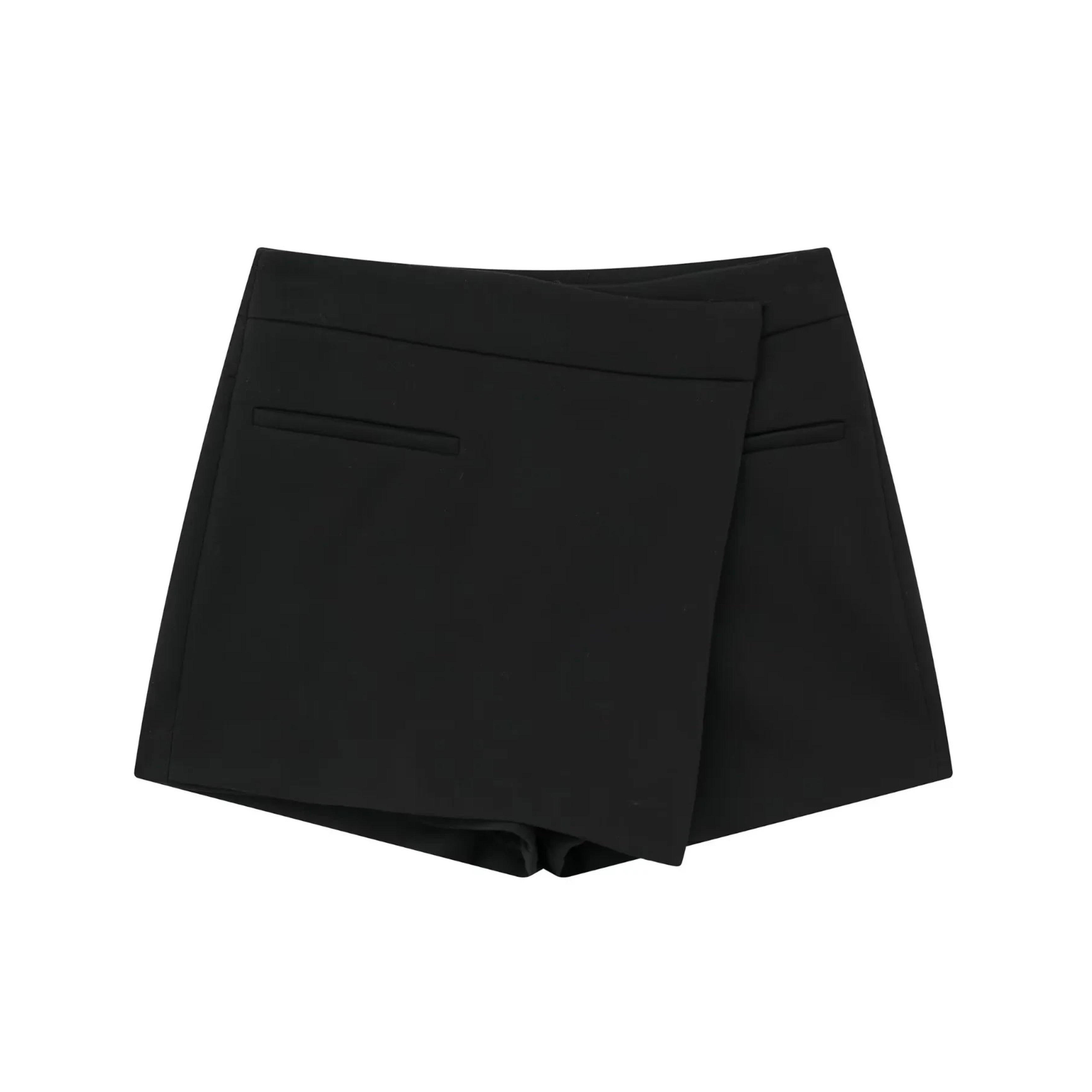 Black Asymmetric Mini Pencil Skort