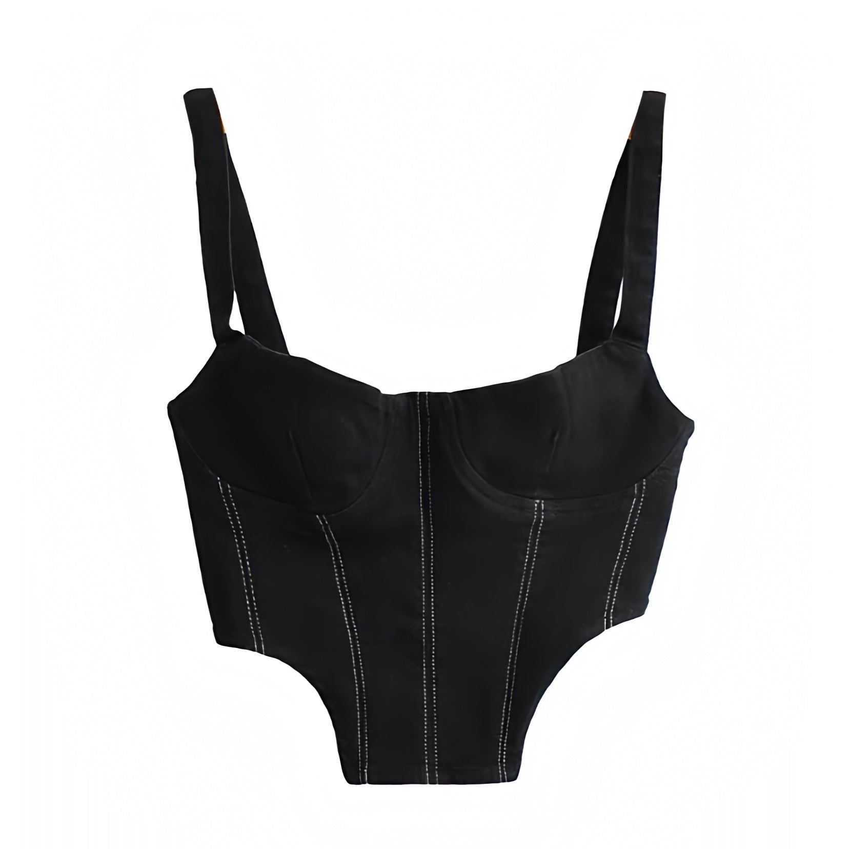 Black Slim Fit Corset Sweetheart Neckline Spaghetti Strap Crop Tank Top Details: