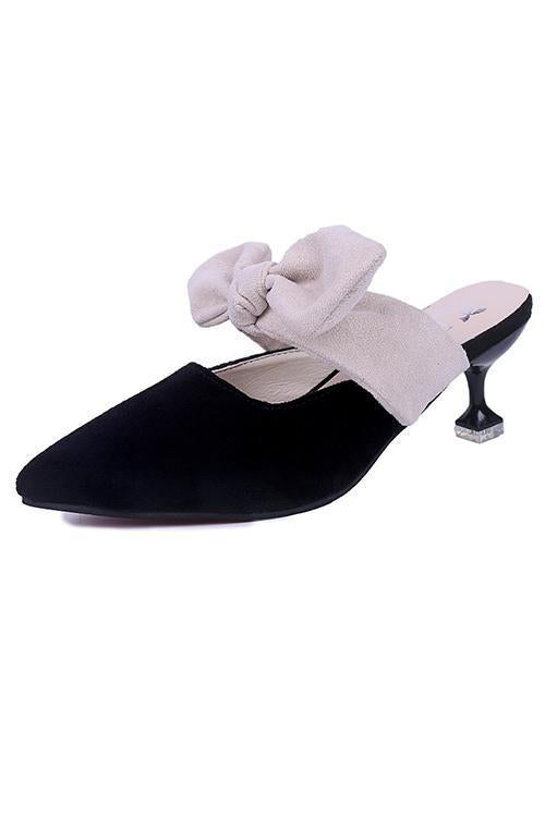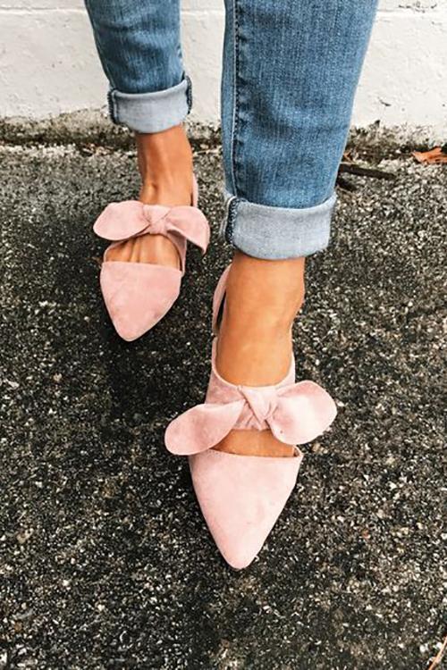Approx. 2" Heel. They're extremely comfortable! Even though they don't have much height. the beige bow detail with the pointed toe shape together help elongate your legs and frame!