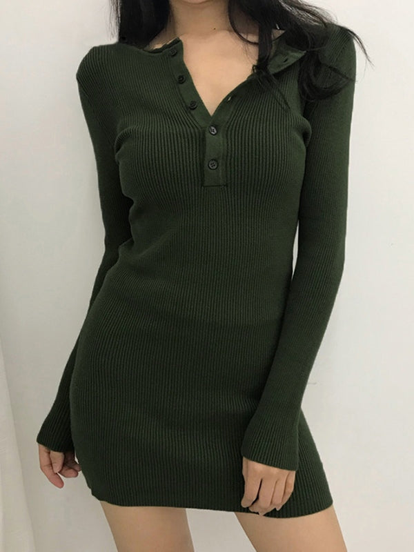Description: Needed a staple knit dress for autumn season. This essential simple dress crafted from rib knit fabric. features a bodycon silhouette. finished with button front fasten design.