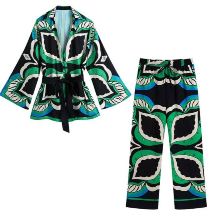 CALI SUMMER SET has an absolutely cute pattern. You can choose 3 items: Kimono. Pants or Shorts. And you also can purchase full set: Kimono and Pants or Kimono and Shorts. This set is perfect for the summer season.