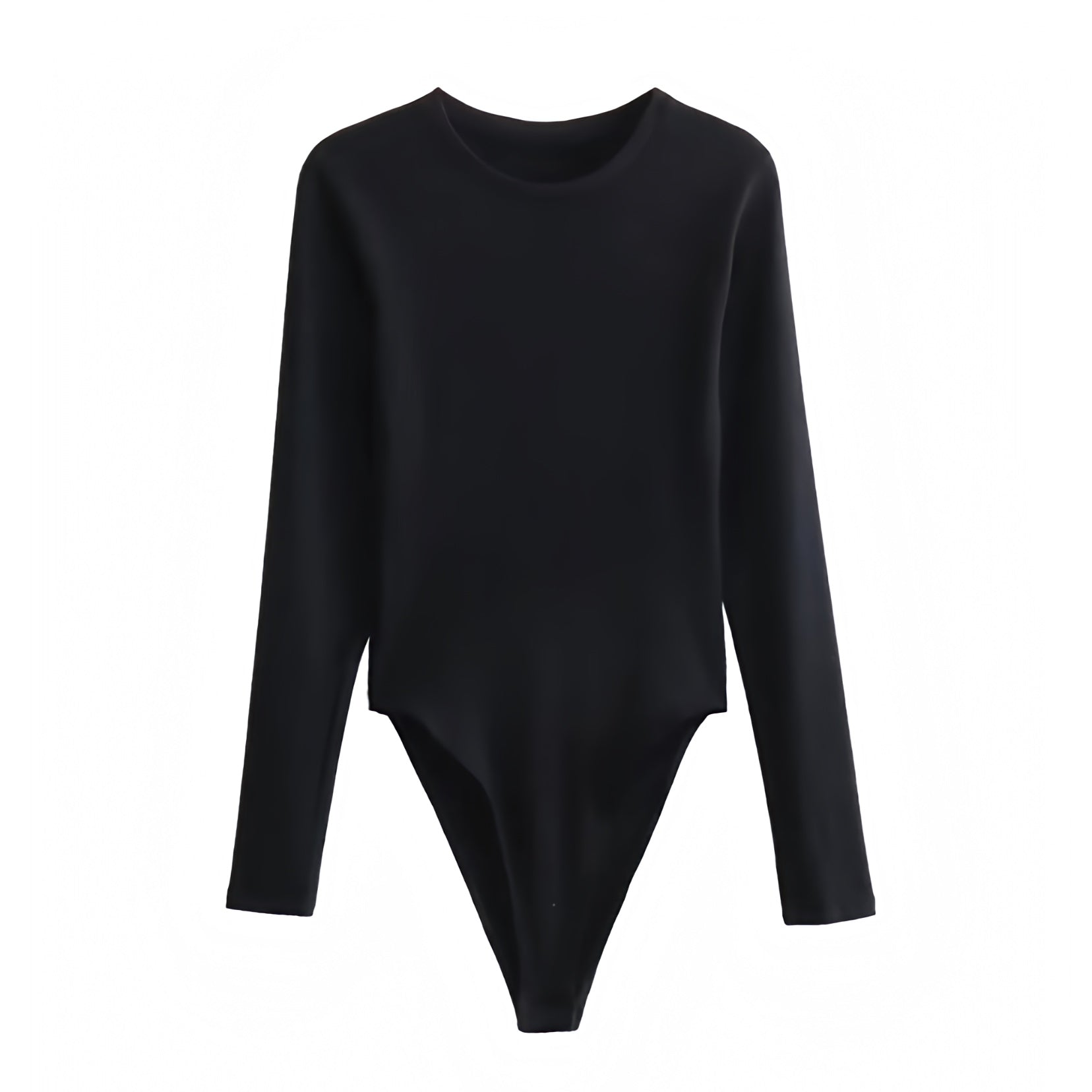 Black Cotton Bodycon Long Sleeve Slim Fit Round Neck Bodysuit Details: