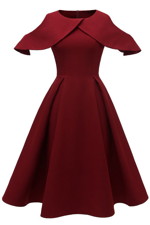Dark Navy Off-the-Shoulder A-Line Cocktail Party Dress.
