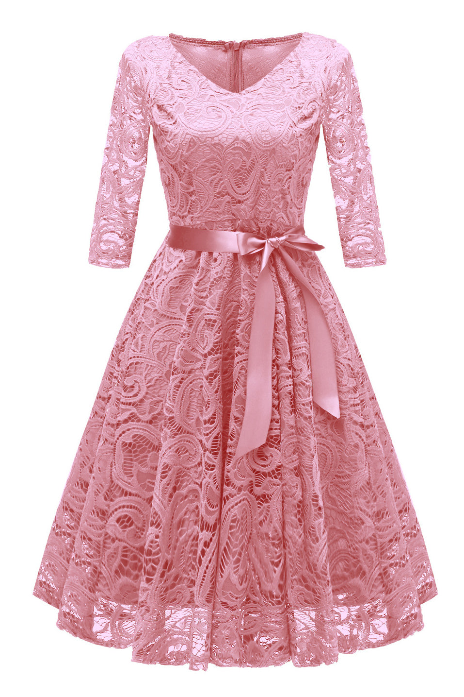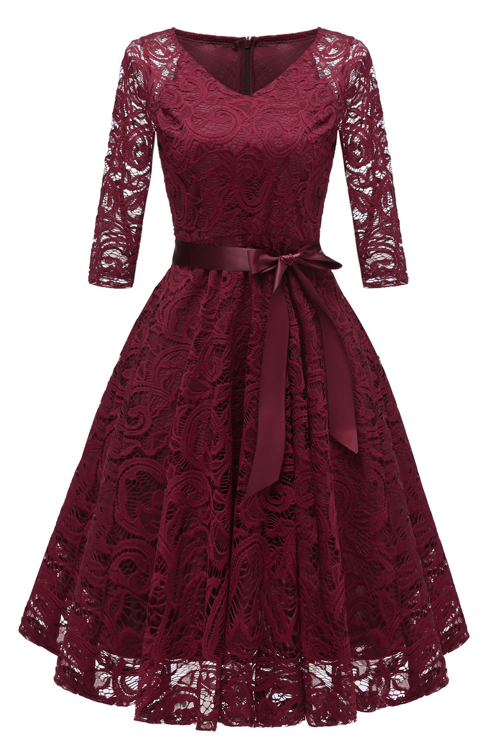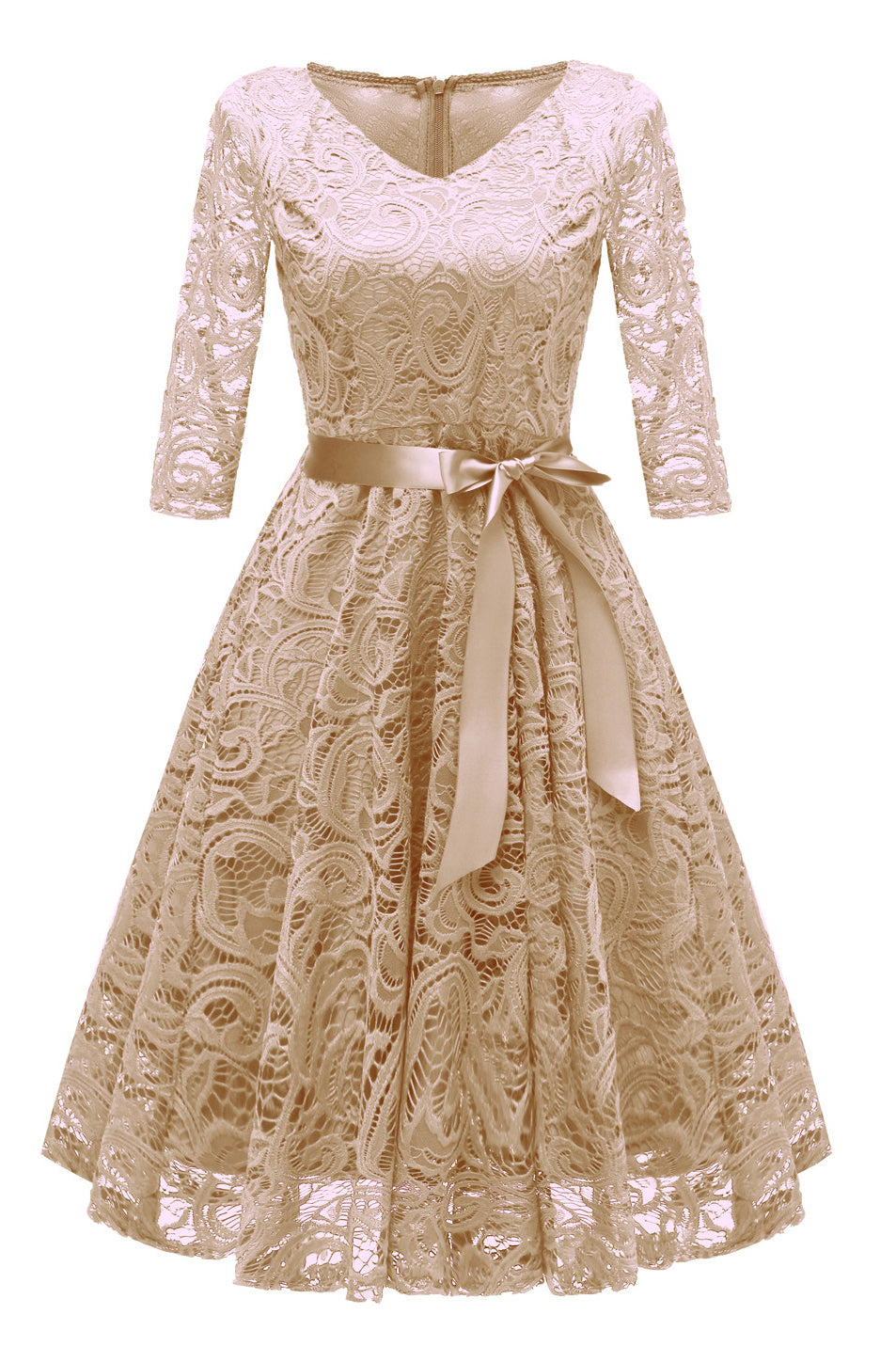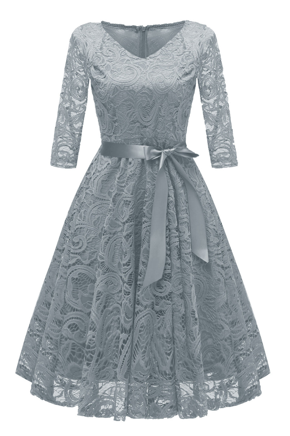 Elegant Dark Navy Lace A-Line Cocktail Party Dress.