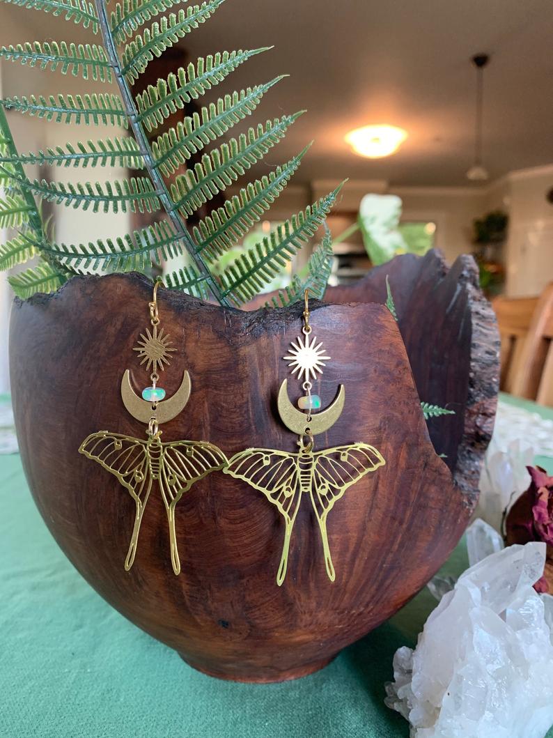 Fairycore Moon Opal Earrings