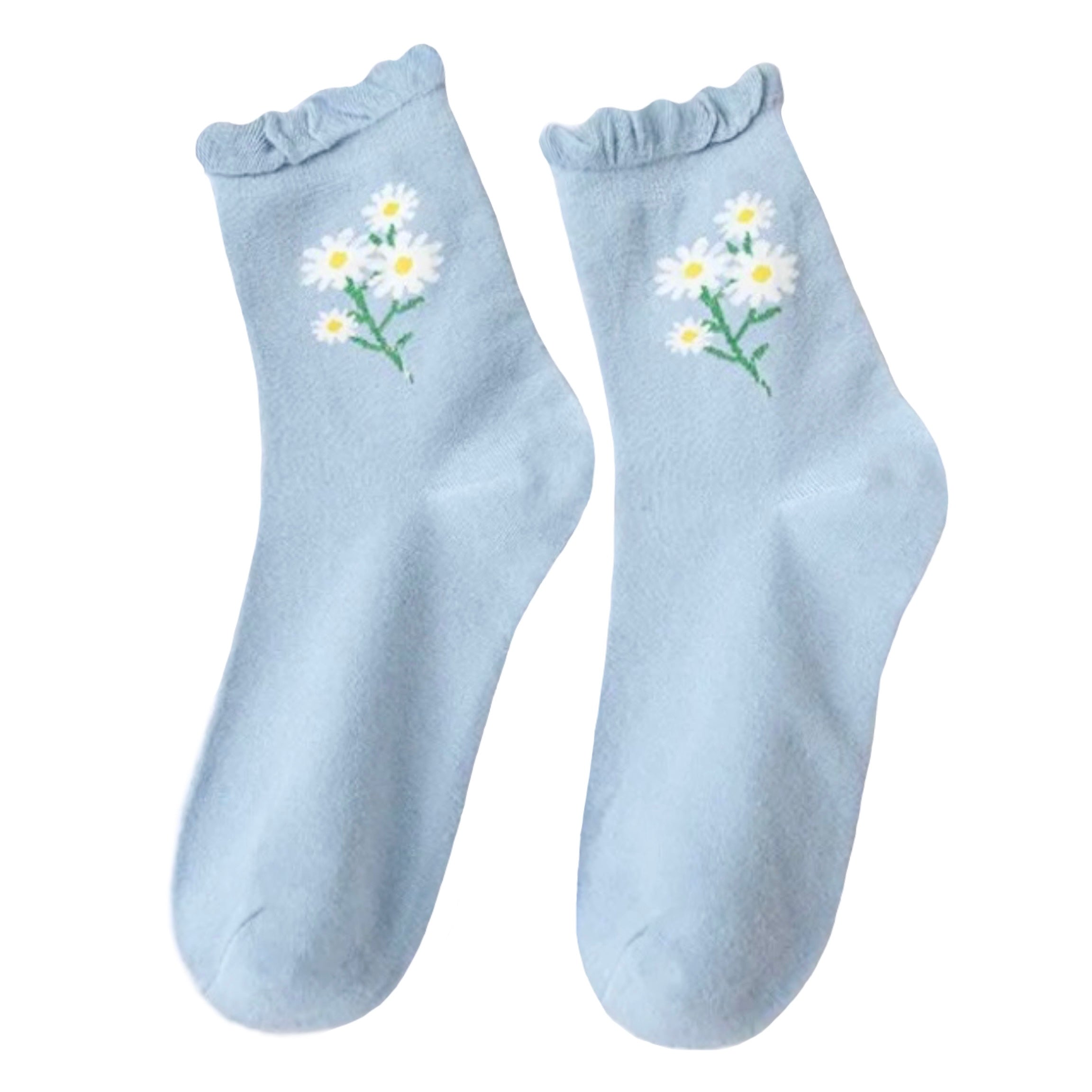 Light Blue Daisy Ruffle Trim Cotton Long Socks