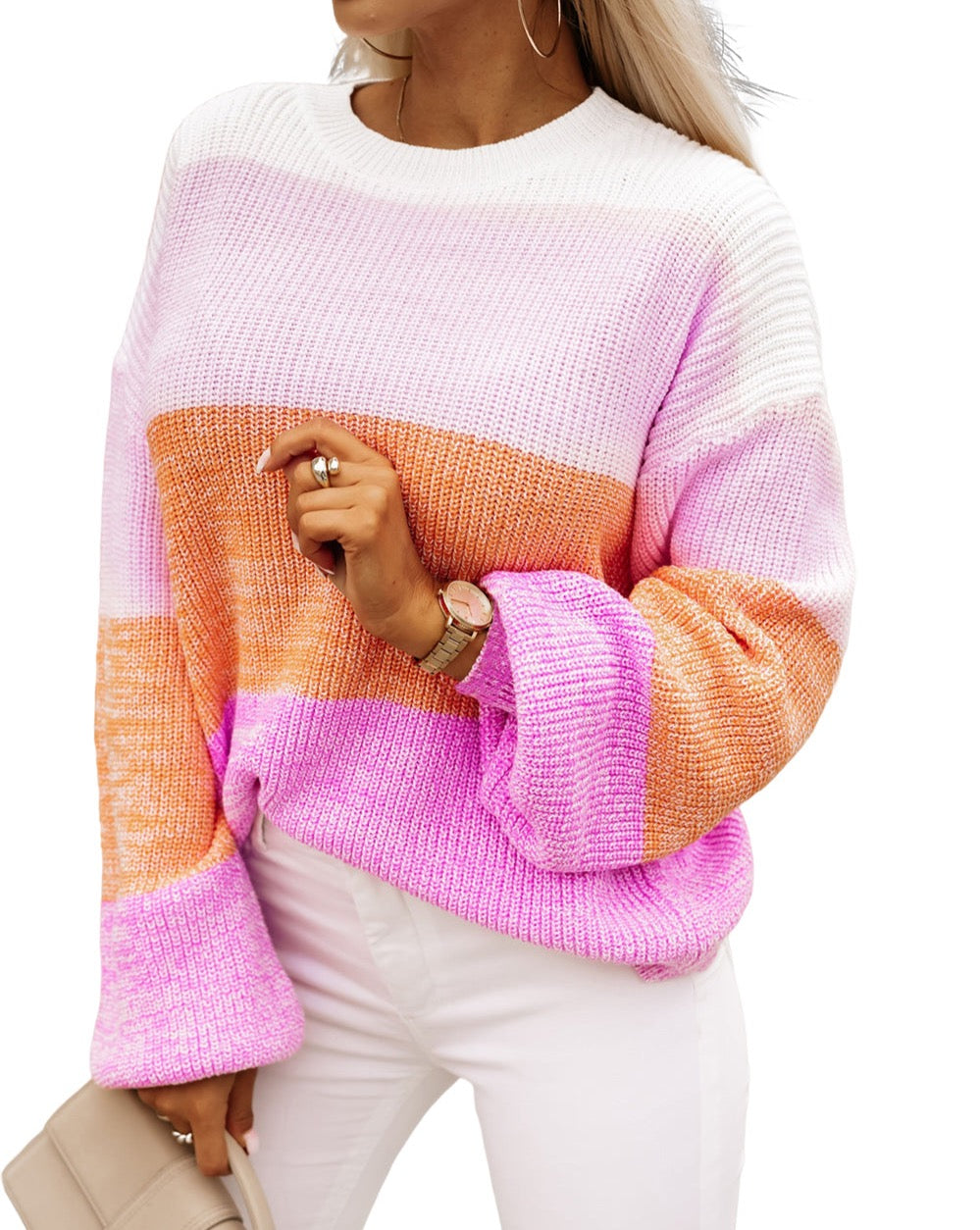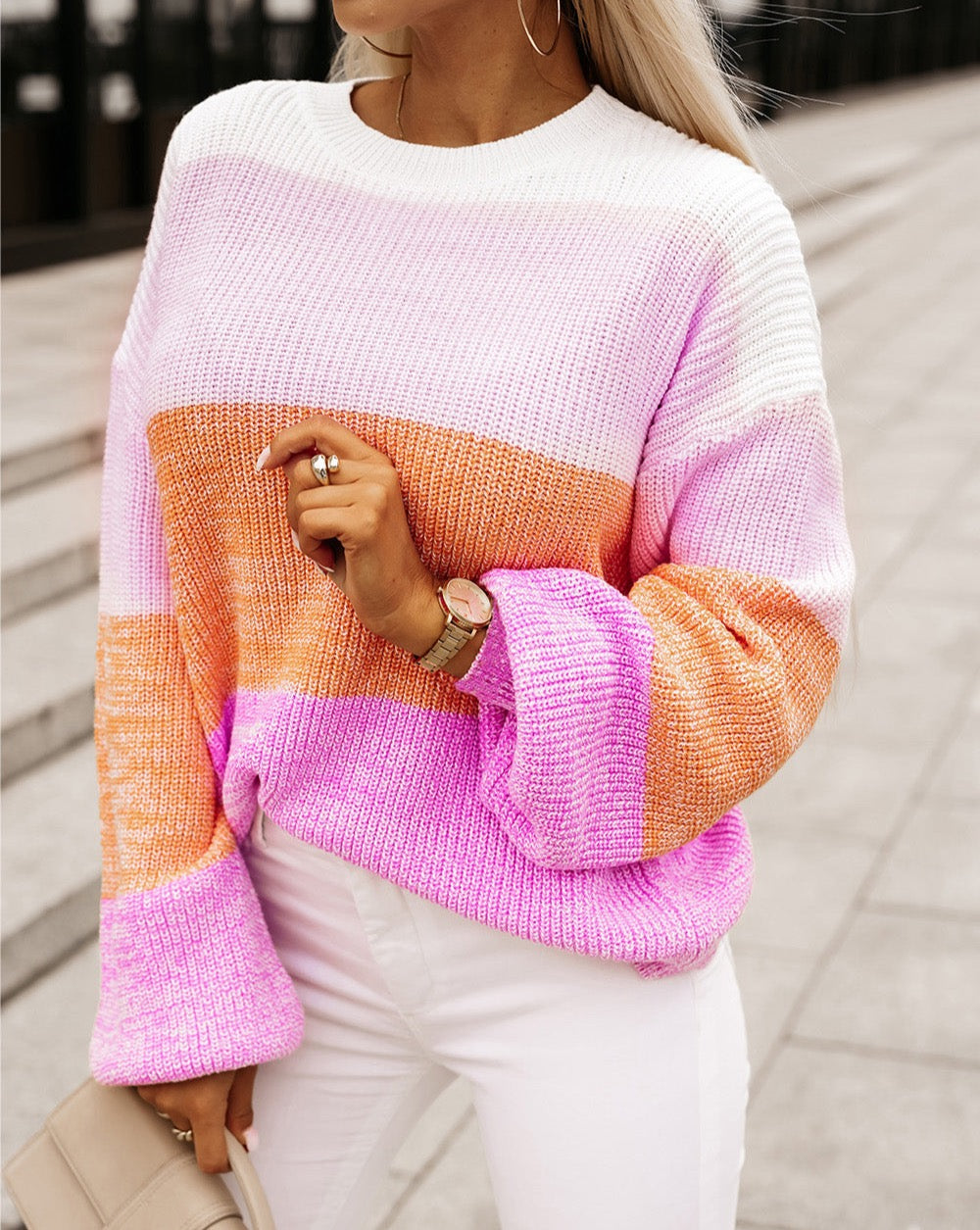 Increase quantity for Colorblock Striped Bishop Sleeve Sweater