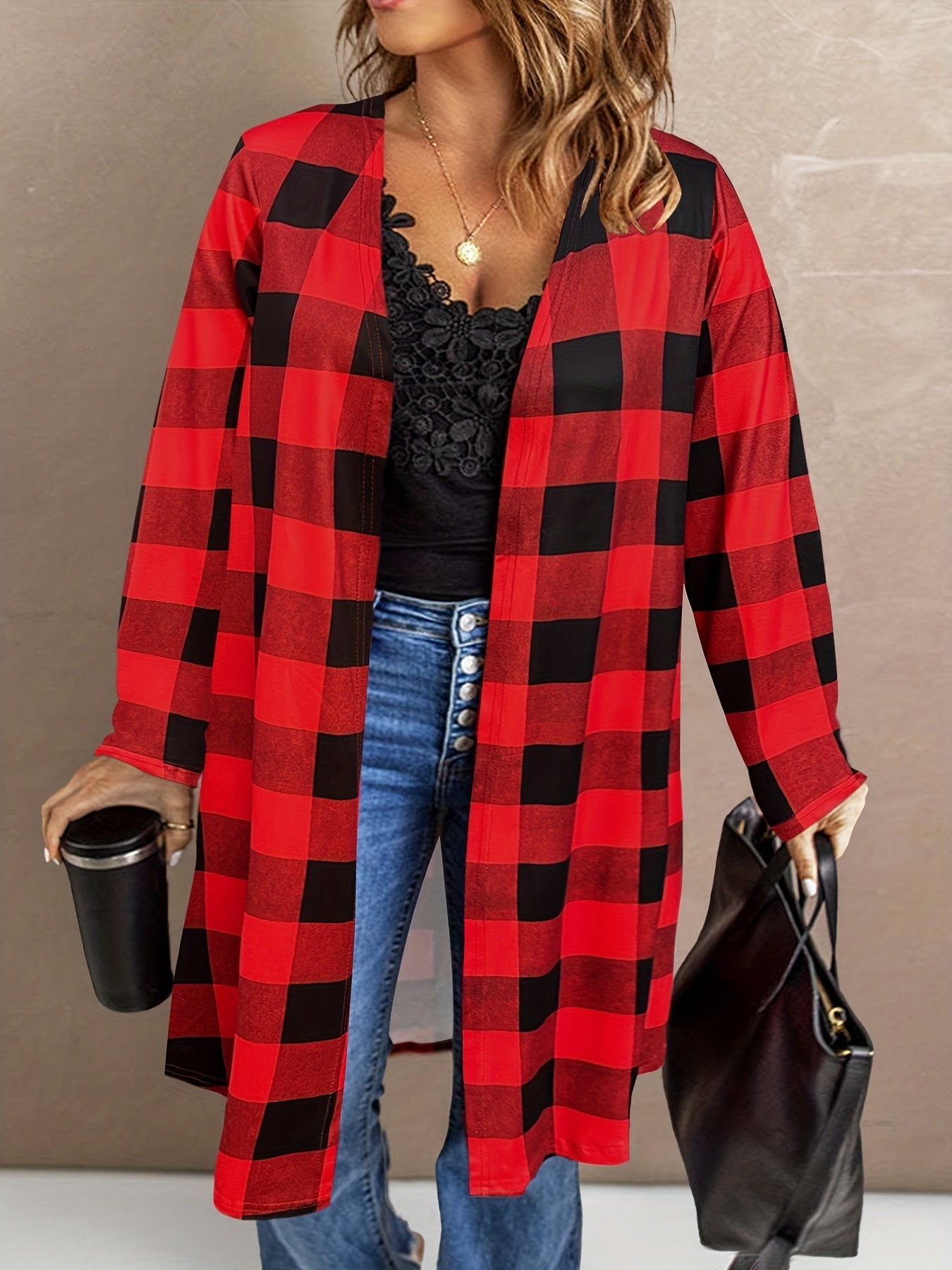 Material: PolyesterStyle: CasualCare Instructions: machine washable. no dry cleanSeasons: FallType: OtherCollar Style: Boat neckFabric: Slight StretchSheer: NoPatterned: PlaidDetails: NonePrinting Type: Random PrintingComposition: 95% PolyesterWeaving Method: Knit Fabric