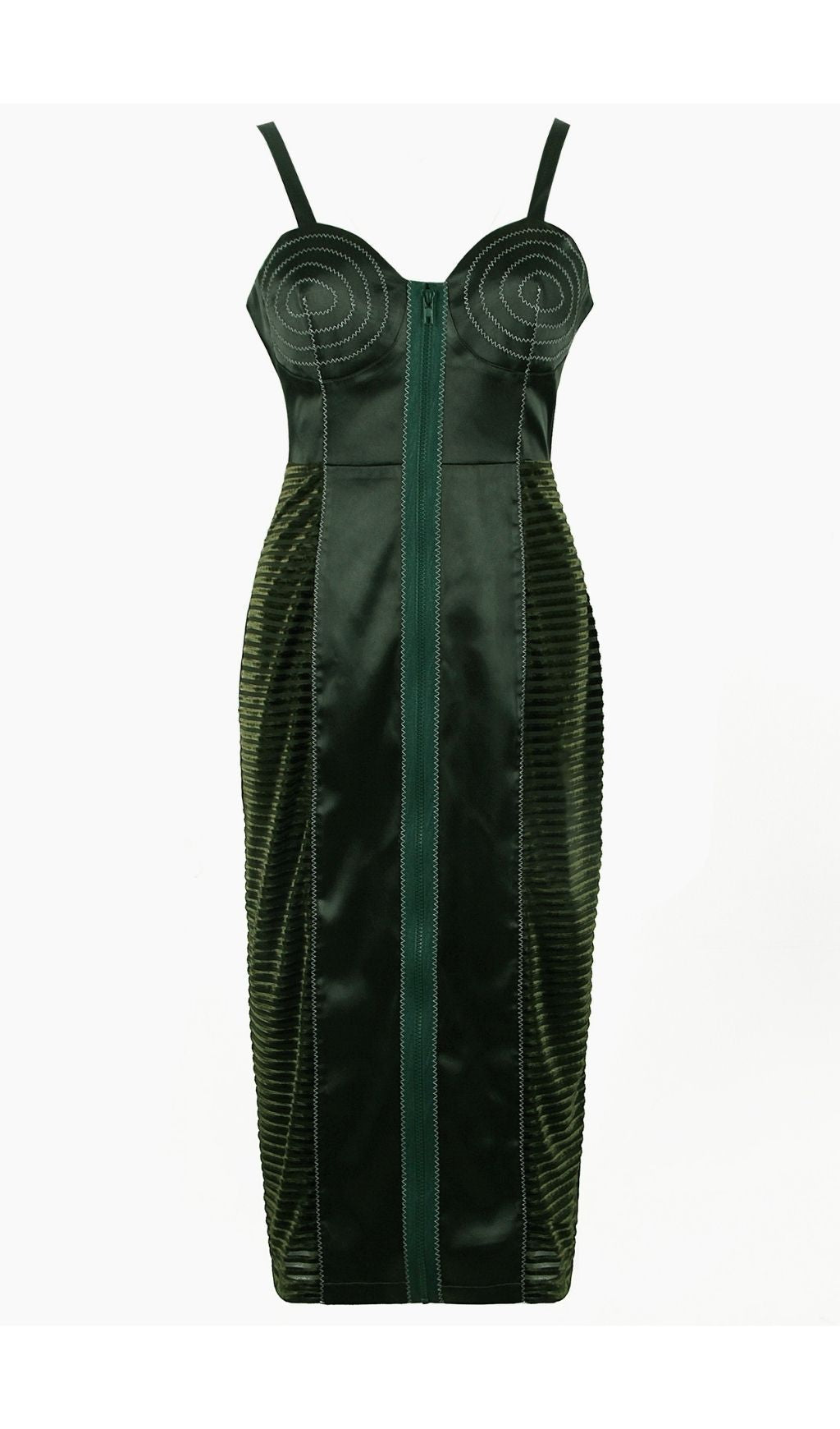 SATIN MIDI DRESS IN BLACKISH GREEN