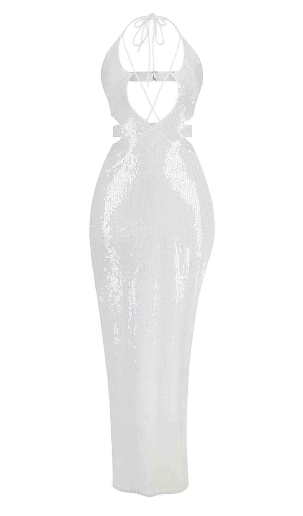 Be ready to make a dazzling entrance in this eye-catching white maxi dress! It features a spectacular deep V cutout and sleek sequins to seriously up the shine factor. An added split lets you show a hint of skin while still looking stunningly polished. Step up your look in this gorgeous show-stopper!