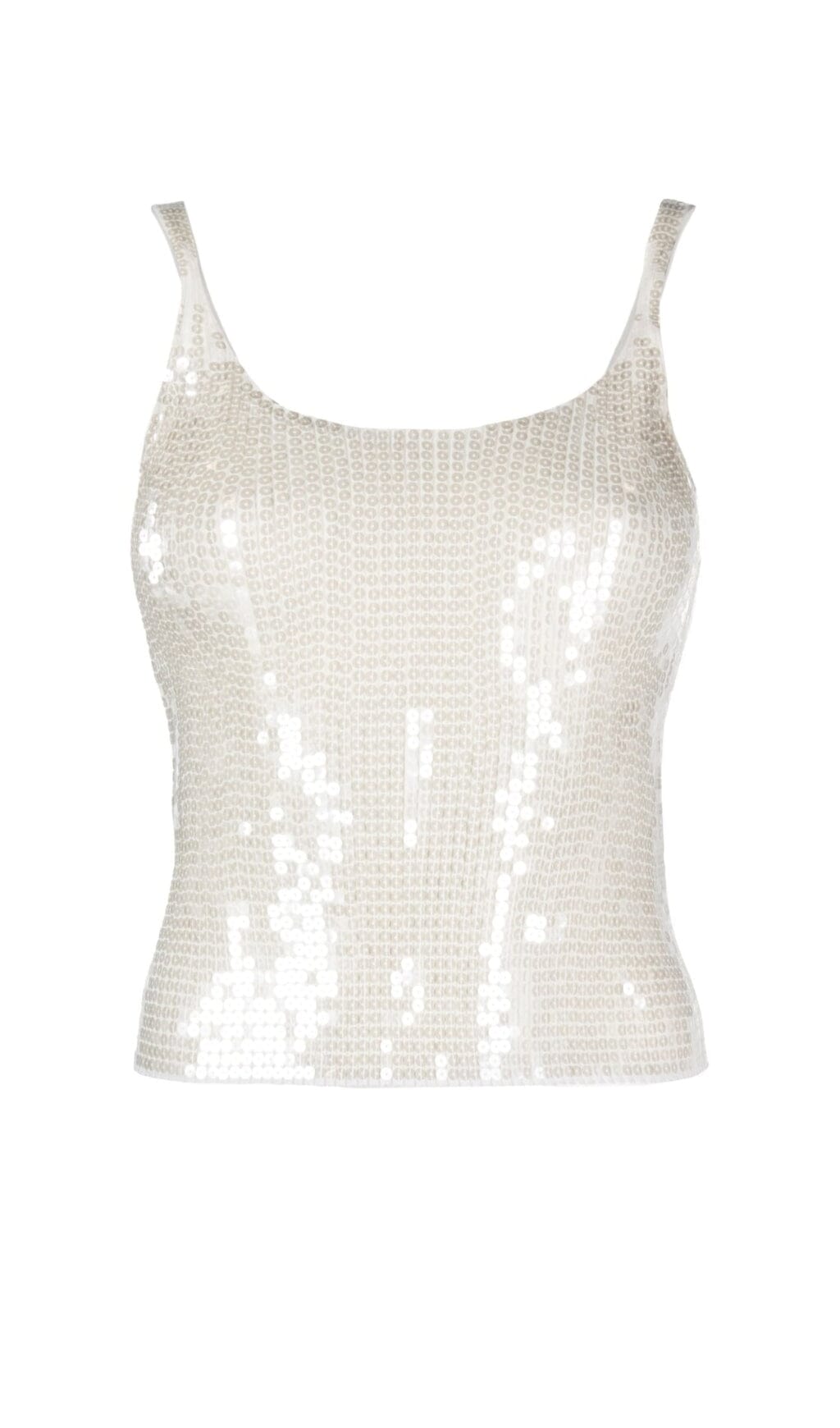 Add some shine to your look with this glimmering tank top embellished allover with light-catching sequins. Pair it with cutoffs for daytime or slip it under a blazer for cocktail hour. However you style it. this sequined top promises to sparkle!