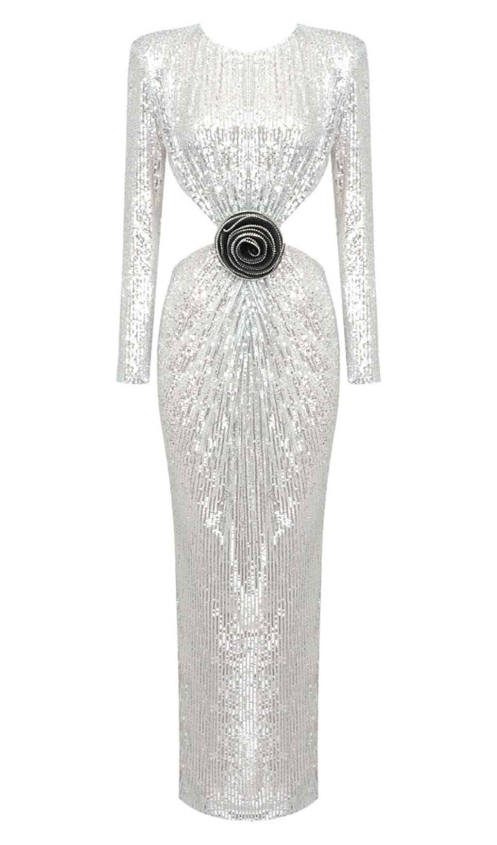 made dress This dazzling sequinned dress is perfect for all your formal events. With an elegant high neck and sexy open back. this dress will make you feel like a million dollars. Whether it's a black tie event or a summer wedding. this dress is sure to make an impression. Dress it up with some killer heels or keep it casual with some pretty sandals. this dress is perfect for any occasion.