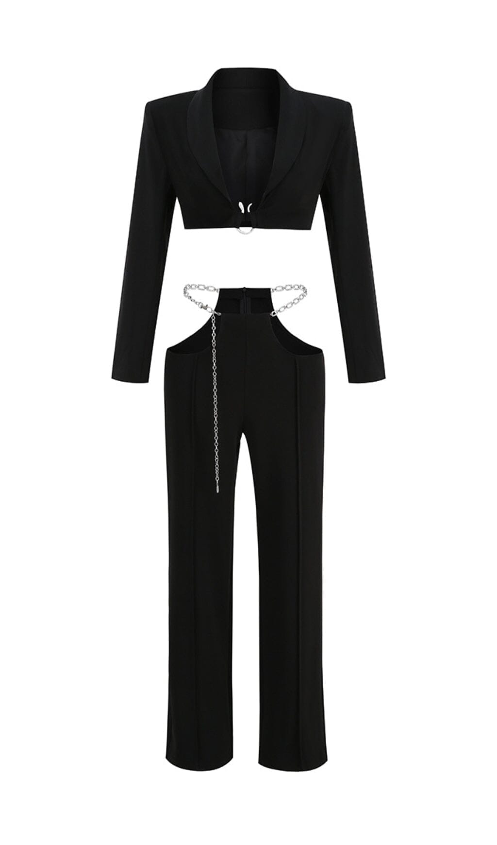 Tired of those boring suits? Then look at this amazing suit. The bold and bright color makes you stand out in the party. We have designed a clean shoulder pad. which can make you look more impressive and different. The large V-neck of the suit jacket extends to the waist. and the length is exactly at the thinnest part of the waist. Instead of the usual buttons. the metal snake buckle is unique and luxurious. The hollow cut at the waist perfectly shows your body curve. and the design of the metal waist chain makes it the most sexy suit. You don't need too much jewelry to wear it. because you are already a walking art.