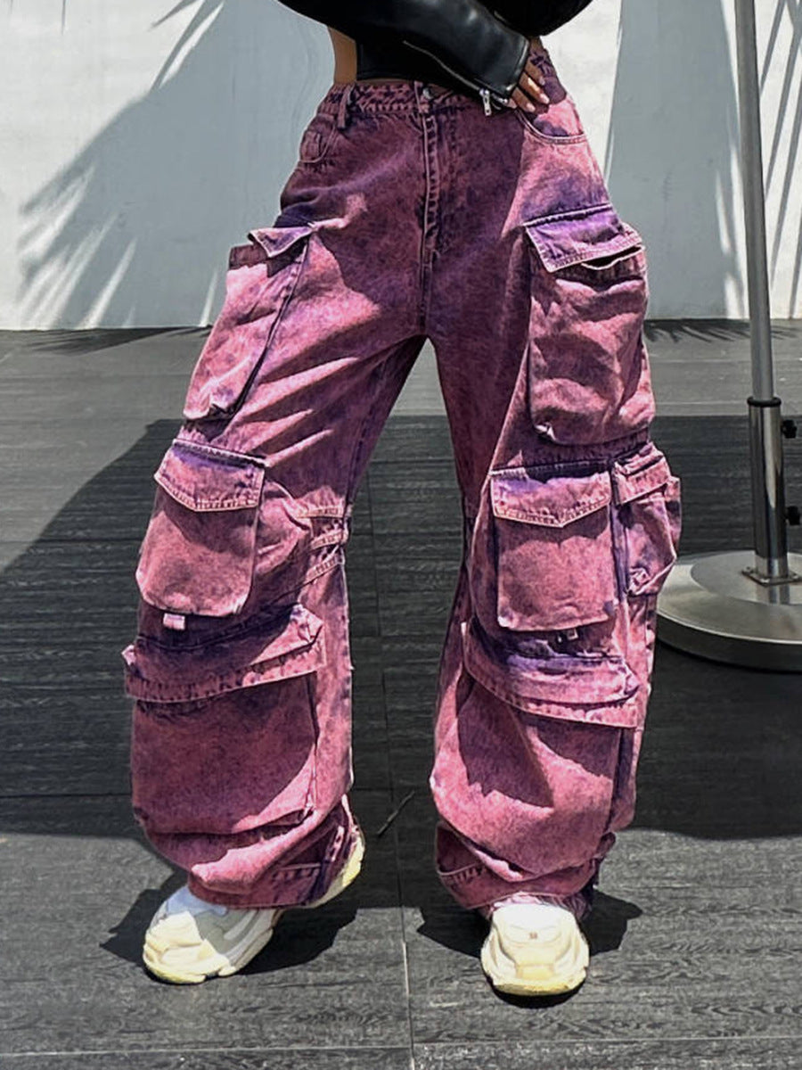 Purple ain't just for royalty! Stand out from the crowd in these stylish. wide-leg cargo pants! Not only do they look hip. but they've got plenty of pockets to keep your stuff close at hand. Get ready to make an entrance!
