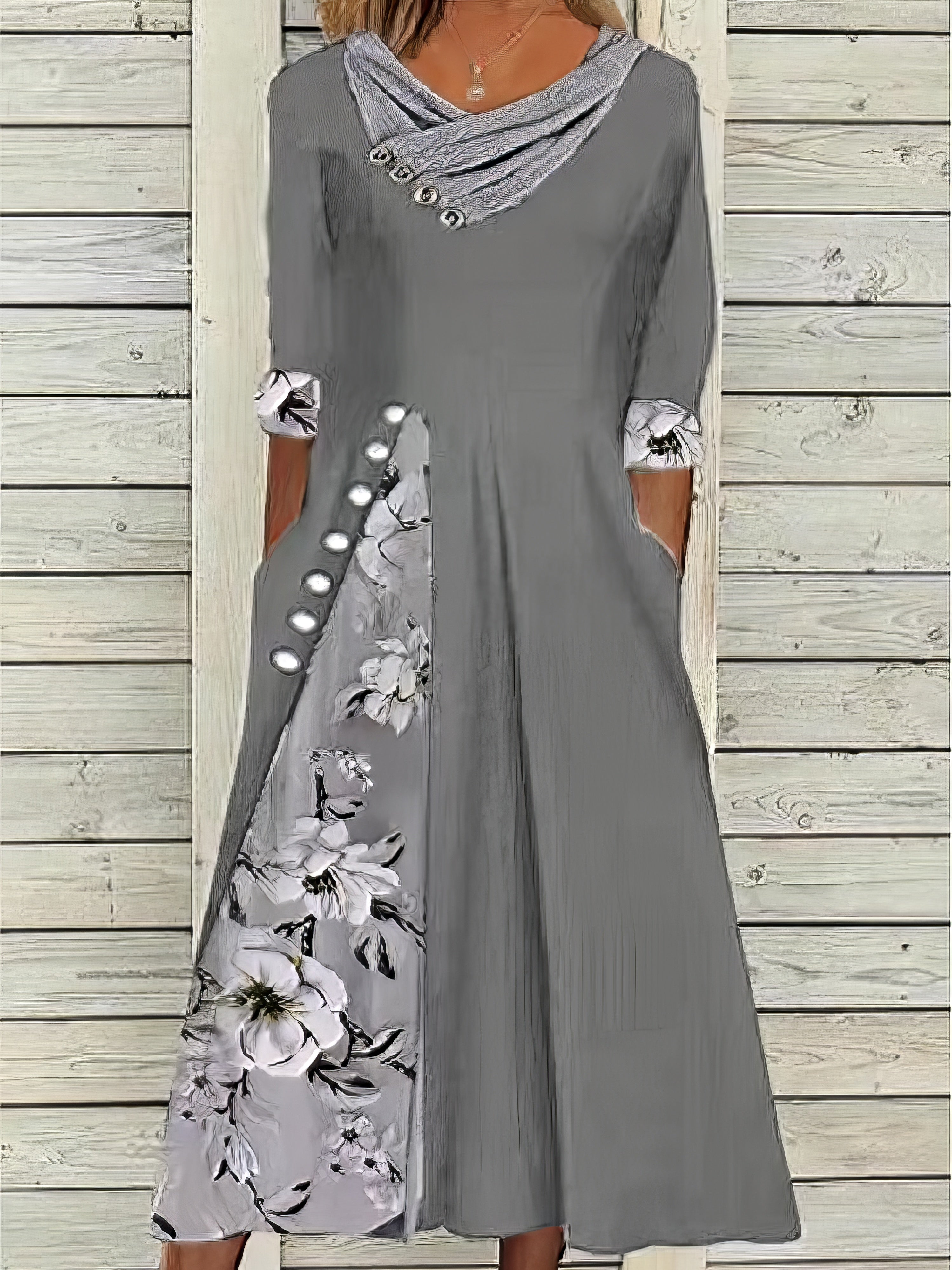 This Floral Split Print Stylish Casual V Neck Midi Dress adds an eye-catching flair to any occasion. Its unique aesthetic pairs elegant print detailing with a simple silhouette to create a stylish and timeless look. The midi-length is perfect for sharing a modern-chic look with a touch of sophistication.